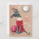 Weihnachtskarte mit niedlicher Sphynxkatze. Entworfen von der polnischen Künstlerin Monika Przerwa-Tetmajer. Blue Spynx Kann mit niedlichen großen grünen Augen, die Sie anschauen, Mond leuchten im Hintergrund :)