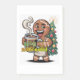 A joyful, cartoon-style Gingerbread Man, depicted with a wide, enthusiastic smile and rosy cheeks. He's wearing a simple white apron and heartily holding up a clear mug filled with dark, steaming coffee, with a prominent plume of steam curling upwards. The text "Spicy and Caffeinated" is creatively integrated onto the coffee mug in a bold, vibrant, multi-colored font, featuring subtle star and flake embellishments. In the background, a minimalist yet festive green Christmas tree is adorned with red and gold baubles, topped with a star, and radiating faint yellow light rays. The overall style is clean, cheerful, and graphically strong, with clear outlines.