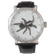 Uhr, Vintage Männeruhr mit schwarzem Lederarmband
