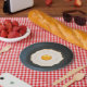 Spiegelei gebacken in einer Wannenentwurfsillustration, in einer perfekten Dekoration für Ihre Küche oder in einem Esszimmer.