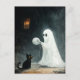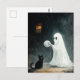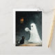 Eine lustige Halloween-Szene mit einem Geist, der will, mit einer Katze mit einem Garnball zu spielen