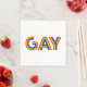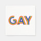 Dieses Kunstwerk zeigt das Wort Gay in einem bunten Regenbogen-Schriftart.