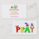 Niedliche Cartoonillustration der kleinen Jungen und der Mädchen, die über riesigen Buchstaben des Alphabetes klettern, die das Wort SPIEL formulieren. Bild verfügbar auf verschiedenen Geschenken und Produkten. Personalisierte Geschäftskarten.