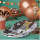 Ein Acrylgemälde von vier spielerischen Kätzchen, die Ärger bekommen, schmückt diese lustigen Party-Teller!