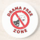 Ein Transitzeichen mit den Worten: Drama-freie Zone. Text mit Bildern der griechischen Masken der Komödie und Tragödie. Störungseffekt beim Design.