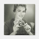 Lächelnde Frau, die im Studio Spielkarten hält, (B&W), Portrait | George Marks | AssetID: 57520357