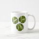 In der Tasse des Kaffees finden Sie drei Tennisbälle mit Textüberlagern, die "Spiel, Set und Match" lesen