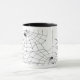 Eine Tasse mit Spinnen und Netzen, denen Sie Ihren eigenen Namen hinzufügen können, wenn sie gewünscht werden.
