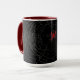 rote und schwarze Tasse mit silbernen Netzen und roter Spinne