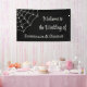 Willkommen Gäste zu Ihrer Hochzeit oder anderen besonderen Veranstaltung im Stil mit diesem einfach zu personalisierenden Banner. Das gotische Design zeigt eine Abbildung eines Spinnennetzes in einer Ecke. Die ecru oder eggshell weiße Grafik und Text sind vor schwarzem Hintergrund.