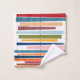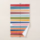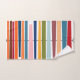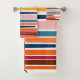Dieses Handtuchhandtuch-Set ist in einem modernen Design aus horizontalen Linien auf einer vertikalen schwarzen Linie mit Kreisen aus der Mitte des Jahrhunderts gehalten.