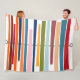 Diese große Fleecedecke hat ein modernes Design von horizontalen farbigen Linien auf einer vertikalen schwarzen Linie mit Kreisen.