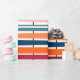 Dieses Verpackungspapier hat ein modernes Design von horizontalen farbigen Linien auf einer vertikalen schwarzen Linie mit Kreisen.