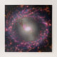 Spiralgalaxie NGC 3351. In Magenta wird molekulares Gas mit hoher Dichte gezeigt. Junge, riesige Sterne beleuchten ihre Umgebung in Rot. Staubspuren werden in weißen und neu geformten Sternen in blau hervorgehoben.