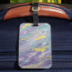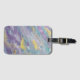 Quiet Reign is an abstract piece defined by its soothing, cool color palette and energetic brushwork. The painting features diagonal sweeps of soft lavender, tranquil aqua, and deep violet, punctuated by bold, shimmering metallic gold accents. The overall effect is one of serene motion, like a gentle rain shower illuminated by a hidden golden light. This artwork adds a touch of modern, peaceful sophistication to any space or product.