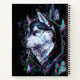 A stunning digital painting of a wolf’s face, rendered with vibrant neon blues, purples, and pinks against a dark, abstract forest backdrop. The glowing, high-contrast style gives the wolf an intense, almost supernatural presence — perfect for edgy wall art, album covers, or apparel that blends nature with cyberpunk energy. neon art, wolf portrait, digital painting, psychedelic art, cyberpunk, animal illustration, glowing design, fantasy art, surrealism, wildlife art