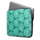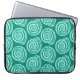 Laptop-Ärmel in Blockdruckmuster auf der Grundlage einer Spiralsohle, in pastellfarbenem Aqua auf türkisfarbenem/Pfauenhintergrund