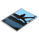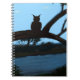 Friedliche Szene einer Eule über dem Fluss kurz vor Sonnenuntergang. Notebooks für Kinder und Erwachsene.