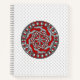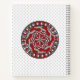 Dieses kreisförmige Mandala-Design besteht aus geometrischen Mustern, die den Gängen ähneln, die man in modernen oder sogar Alien-Maschinen findet, in Rot- und Grautönen.