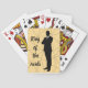 Klassische, elegante Spielkarten in dunkelgelb und schwarz mit Grafiken und Phrasen, die Luxus ausstrahlen
