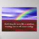 Auf diesem Poster wird das phantastische Foto eines Regenbogens über einem Feld von Blume gezeigt, mit Vers von Jacqueline Ann Piech: "Gottes Liebe ist für uns wie ein Regenbogen, der auf alle zugeht und nie endet". Eine großartige Art, eine Mauer zu erhellen und eine große Erinnerung von Gottes Liebe für uns!