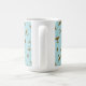 Coole Tasse mit einem stilvollen Muster von handillustrierten Spitfire-Flugzeug auf hellpastellblauem Hintergrund.