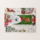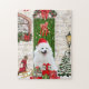 Spitz Dog Weihnachten sitzen außerhalb dekorierten Zuhause mit Weihnachtskranz, Weihnachtsbaum ist eine perfekte Weihnachtsgeschenk Idee für Hundefreunde.
