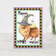 Senden Sie Halloween-Grüße mit dieser Karte eines niedlichen Spitzes, der einen Hexehut trägt, der mit einer albernen Spinne verziert wird. Groß für Kinder alles Alters das Liebe Poms und Halloween. Haben Sie ein glückliches Heulen-oween!