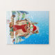 Spitz Hund im Schnee mit Weihnachtsmannmütze und Weihnachtsgeschenke ist eine perfekte Weihnachtsgeschenkidee für jemanden, der diesen Hund züchtet Liebe.