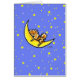 Originelles Design von Off-Leash Art mit einem orangefarbenen Spitz, der auf einem Halbmond im Sternenhimmel schläft. Niedliches skurriles Design für Pom- und Hundefreunde.
