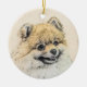 Spitz (Orange) Malerei - Originale Hundekunst Keramik Ornament