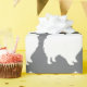 Spitz Packpapier weiße Silhouette graue Hintergrund Geschenkverpackung Spitz Hund. Party liefert Spitz Packpapier Design. Papier Umhüllung Hund Silhouette künstlerische Designs. Art Design von Ines Miller.