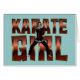 Heller roter Text und ein Karatemädchen in der Pose. T - Shirts, Sweatshirts, Tassen, Plakate und andere Geschenke für die Kriegskunstfrau aller Niveaus. Bunter Gang für den Karatelehrer, -studenten, -schwarzen Gürtel oder -fan.