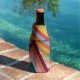Diese Flasche cooler hat ein Retro-Design der 1970er Jahre ist aus geschichteten upside-down Vs-Schichten an drei Stellen in Retro-Farben.