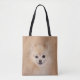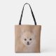 Niedliches Orange oder Kitz Spitzgesicht mit einer matchingly farbigen hölzernen Hintergrundhundeliebhaber-Taschentasche