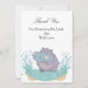 A sweet and playful illustration of a smiling baby hippo splashing gently in the water, surrounded by soft plants and bubbles. With pastel colors and a warm, cheerful expression, this image represents innocence, happiness, and the joyful arrival of a precious little one—perfect for celebrating a baby shower full of love and smiles.