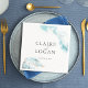 This chic and modern wedding napkin features a white background with splashing waves in turquoise blue and faux/fake gold. Personalize it for your needs. You can find matching products at my store.