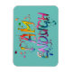 Beautiful splattered "I Am Enough" Affirmation magnet Full of Colors, over a teal background. To cheer you up every day, and make you remember that you are enough and that you are an amazing human being.