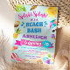Dive into fun with our beach birthday invitation! Perfect for an epic summer birthday party, this vibrant invitation bursts with excitement in a super festive summer theme. The design showcases festive summer beach themed elements. The lively imagery captures the essence of a sunny, joy-filled day. Personalize the invitation with your party details to make it uniquely yours. Printed on high-quality cardstock, complete with envelopes for easy mailing. Make a splash with our beach birthday invitation and set the tone for an unforgettable birthday party filled with fun and laughter. Order now and let the celebration begin!