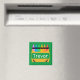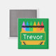 Bold and colorful personalized magnet for kids is great for playrooms and homeschooling areas. Design features a split crayon box with room to personalize with child's name in center, on green background.