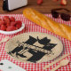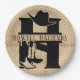 Split Monogram Letter "H" mit Cowboystiefeln und Hut auf rustikalem Schachbretthintergrund. Personalisieren mit dem Namen der Familie oder des Unternehmens