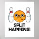 Split Happens Funny Bowling Pun verfügt über einen niedlichen Bowlingball zwischen zwei Bowling Buttonen. Perfektes Pun-Geschenk für Familien und Freunde, die niedliche Bowling-Liebe Punts.
