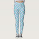 Split image showing front and back views of leggings. They feature a light blue and pink plaid pattern. The model wears black sneakers. The tone is casual.