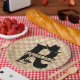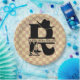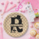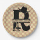 Split Monogram Letter "R" mit Cowboystiefeln und Hut auf rustikalem Schachbretthintergrund. Personalisieren mit dem Namen der Familie oder des Unternehmens