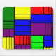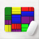 Dieses Mauspad hat ein Bauhaus-Design von Rechtecken, die in immer kleinere Teile in Rot, Gelb, Blau, Grün, lila auf einem schwarzen Feld unterteilt sind.