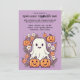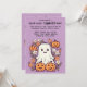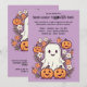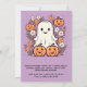 Dieses Halloween-Party lädt Sie zu einem angenehmen Cartoon-Design mit spielerischem lila Hintergrund ein. In der Mitte befinden sich vier niedliche Kürbisse, die jeweils ein lächelndes Gesicht tragen, das dem Halloween-Thema eine warme und freundliche Atmosphäre verleiht. Neben den Kürbissen ist ein fröhlicher, freundlicher Geist mit einem fröhlichen Ausdruck, der der Szene eine skurrile Touch verleiht. Um sie herum gibt es kleine Gänseblümchen, die dem Gesamtbild einen zarten, unerwarteten Charme verleihen. Der lila Hintergrund bildet einen lebendigen Kontrast zu der leuchtenden Orange der Kürbis und dem Weiß des Gespenstes, wodurch die Figuren Pop machen und gleichzeitig ein zauberhaftes, festliches Ambiente schaffen. Die Gänge fügen ein süßes und leichteres Element hinzu, das Halloween-Thema mit einer Touch von Laune und Freude in Einklang bringt. Oben auf der Vorderseite steht: "Du bist zu einem Halloween-Party eingeladen!" Der Text ist in einem lustigen Schriftart im Stil eines Cartoon, der dem spielerischen Klang der Einladung entspricht und sich vor lila Hintergrund abhebt. Unterhalb der Bildunterschrift gibt es Platz für individuell anpassbare Details wie Datum, Uhrzeit und Standort des Party, sodass Sie sich für Ihre Veranstaltung leicht personalisieren können. Die Rückseite der Einladung wird mit dem gleichen lila Hintergrund fortgesetzt und bietet zusätzlichen Platz für zusätzliche Texte oder Notizen. Dieser Raum kann genutzt werden, um besondere Details wie "Kostüme gefördert!" oder "Mach dich bereit für eine Nacht des Vergnügens und der Leckereien!" aufzunehmen. Dieses Design verbindet niedliche, freundliche Persönlichkeiten mit einer lebendigen lila Kulisse und eignet sich ideal für ein fröhliches und unvergessliches Halloween-Fest.