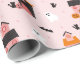 Gemustertes Halloween-Packpapier mit spitzigen Häusern, Jack-o'-Laternen, Geistern, schwarzen Katzen und Fledermäusen. Das niedliche Design in Rosa, Orange, Schwarz und Rot ist perfekt, um Ihre Halloween-Geschenkverpackung um eine Touch sprichwörtlichen Zaubers zu bereichern. Alle Kunstwerke sind originell und von Creative Wolf Design entworfen.