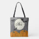 Eine stilvolle Halloween-Tasche mit einem leuchtenden Mond mit Boo!-Text, über dem Kopf fliegenden Fledermäusen und einer Reihe Kürbis. Ideal für Bücher, Lebensmittel oder als wiederverwendbare Halloween-Trick- oder Leckerei-Tasche.