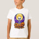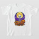 A fun and adorable Halloween t-shirt for kids featuring a smiling skeleton sitting on pumpkins under a bright full moon. Perfect for boys and girls who love spooky-cute Halloween vibes!