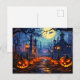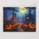 Auf dieser phantastischen Postkarte befindet sich ein Spuk Friedhof, der mit gut beleuchteten Kürbissen ausgerichtet ist.